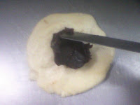 First of all,you need to fill the red bean paste into the sweet dough preferably 50gm dough.Its up to you how much do you want but if you fill too much,you wont be able to clip it.